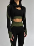 Лосини з широким поясом та високою талією. Еластичний топ-рашгард із довгим рукавом. Топ зі зніними чашками, позаду красивий виріз, що максимально оголює спинку, відмінно фіксує груди. Костюм відмінно тягнеться, забезпечує повне прилягання до тіла, не утворює складки.