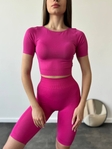 Комплект кроп-топ футболка та вело без Пуш ап гладкі Україна в 6 кольорах