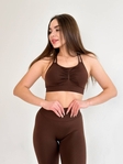 Комплект лосини із пушап та топ в кольорі шоколад