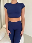 Комплект Premium якості топ із відкритою спиною та чашками та легінси із Пуш ап в синьому кольорі