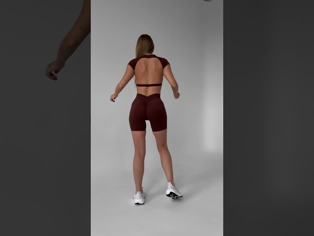 Комплект Premium якості Вело-шорти з V-подібною збіркою с PUSH-UP єфектом та Кроп топ футболка з відкритою спиною та чашками 01 в кольорі шоколад