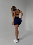 Комплект Premium якості Вело-шорти з V-подібною збіркою с PUSH-UP єфектом та Кроп топ футболка з відкритою спиною та чашками 01 в кольорі темно-синій