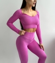 Лосини з широким поясом та високою талією. Костюм відмінно тягнеться, забезпечує повне прилягання до тіла, не утворює складки.