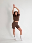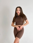 Комплект рубчик кроп топ та Укорочені вело без Пуш ап в кольорі шоколад
