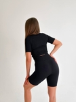 Комплект рубчик кроп топ та Укорочені вело без Пуш ап в чорному кольорі