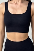 Комплект топ та велосипедки без Пуш ап у дрібний фактурний рубчик в чорному кольорі