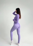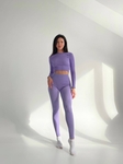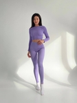 Комплект в рубчик Кроп топ із довгим рукавом та легінси із Пуш ап в кольорі лаванда