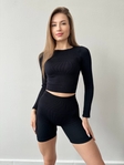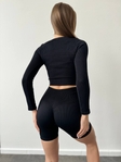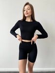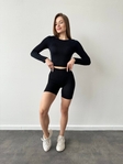 Комплект в рубчик кроп топ та вело із Пуш ап Україна в чорному кольорі