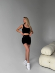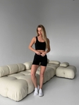 Комплект в рубчик топ на широких брителях та вело укорочені із Пуш ап в чорному кольорі