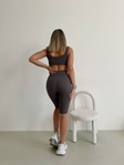 Кроп топ в рубчик на широких брителях в сірому кольорі